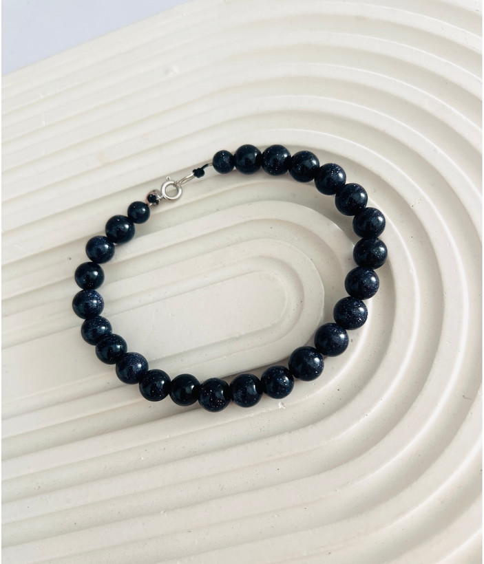 دستبند مردانه سنگ دلربا آبی با رنگ سرمهای عمیق و ذرات براق، جلوهای خاص و متفاوت به استایل میدهد. این سنگ بهخاطر ظاهر کهکشانی و انرژی مثبتش محبوب است. قفل فلزی استفاده از آن را راحت و ایمن کرده و گزینهای عالی برای هدیه یا استفاده روزمره محسوب میشود ✨🌌